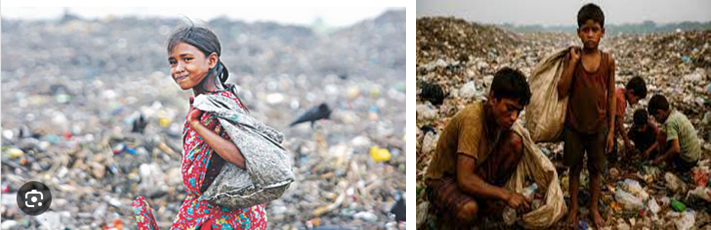 Street waste collection: In big cities or slums, small recyclable items such as plastic bottles, rotten fruits thrown away from homes, food waste, glass bottles, etc., lying in various dustbins are collected, causing their bodies to suffer from various serious physical diseases.